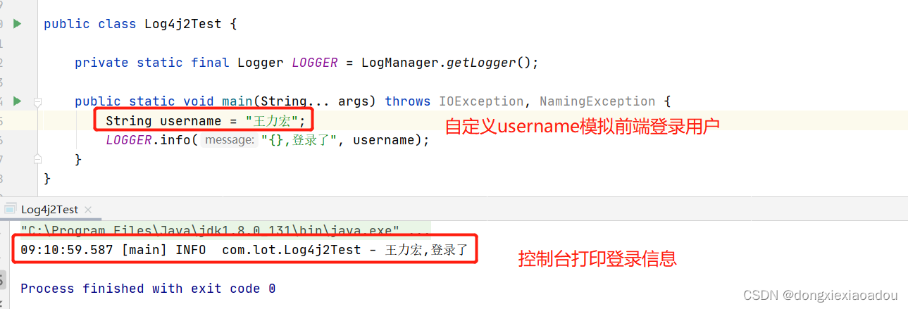 如上,我们自定义username模仿前端请求数据,通过LOGGER.info打印登录的用户名,我们就可以在控制台查看打印的信息。这样我们就可以记录登录的用户。